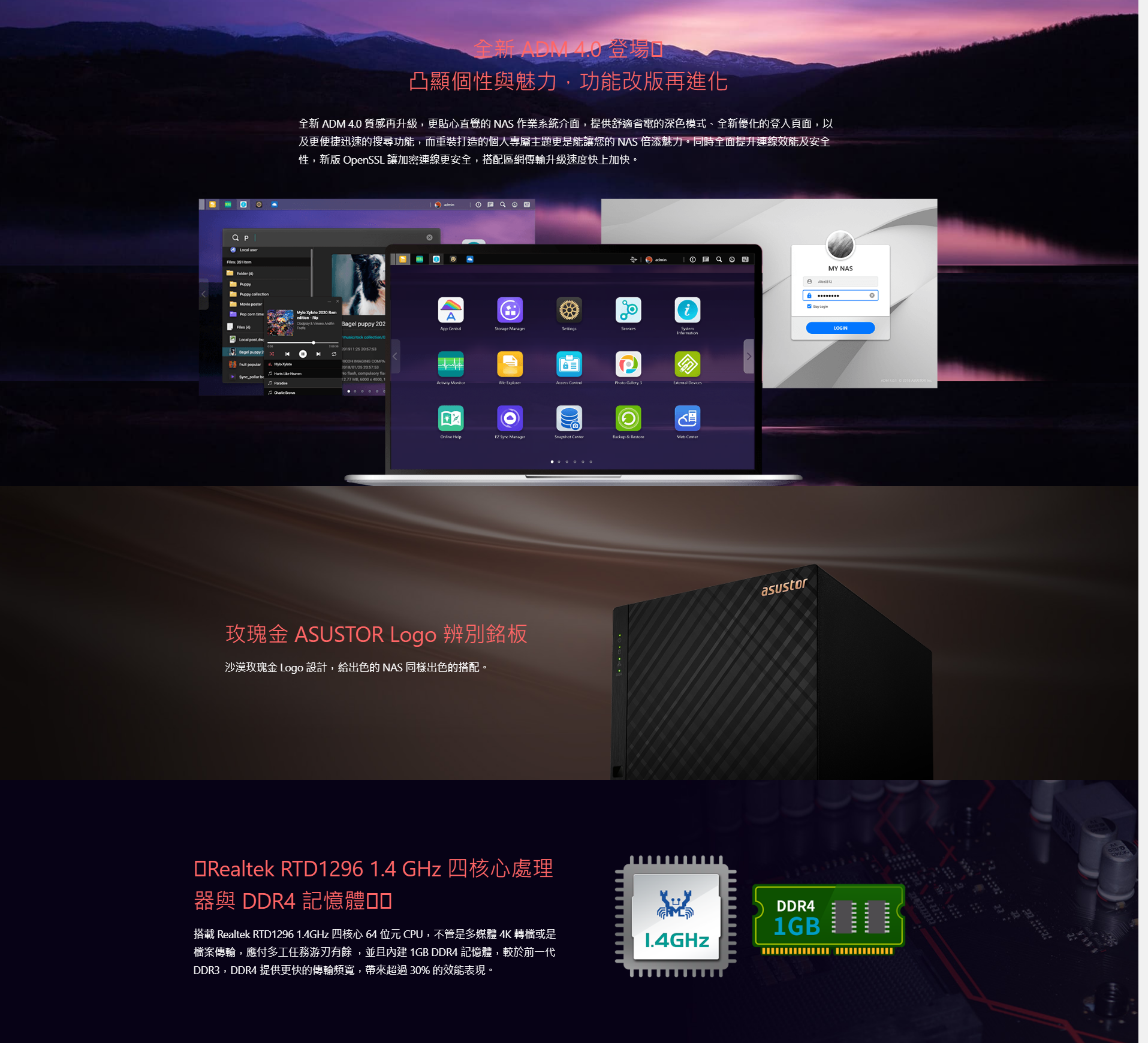 搭載 Realtek RTD1296 1.4 GHz 四核心處理器